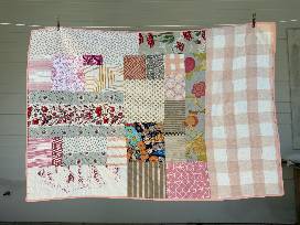 Handmade quilt by Chris Powers, a volunteer nurse at the PWMC and world-class quilter! This beautiful quilt in shades of coral is 44" x 63" and is made with luxury linen from Erika M. Powell Textiles/Urban Grace Interiors Textiles.