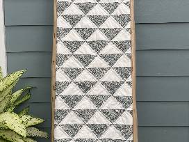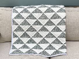Beautiful hand-made quilt by PWMC volunteer and world-class quilter, Chris Powers. This blue and white triangle quilt is made of fabric from Erika M. Powell Textiles/Urban Grace Interiors Textiles. It is hand-quilted and measures 52" x 70".