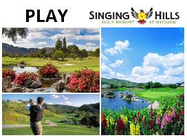 Complimentary Round of Golf for Two: Redeemable at Singing Hills Golf Resort at Sycuan. Based on availability. This coupon has no cash value and must be surrendered at the time of check-in. No change given. No exchanges, refunds, or substitutions, and no reproductions accepted. Lost coupons will not be replaced. Management reserves the right to change, modify or cancel this offer without notice. Must be 18 or older to redeem offer. Advance reservation required.