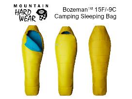 - Mountain Hardwear Bozeman? 15F/-9C Camping Sleeping Bag in Citron Sun. Regular size. Retail value is $110. Donated by Mountain Hardwear. See more info on the Mountain Hardwear website.