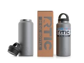 - RTIC 36oz Stainless Steel Bottle with Double Wall Insulation. Holds ice for up to 24 hours. Keeps drinks ice cold longer and also great for hot beverages. Leak proof cap with three finger grip. Extra wide opening for easy filling, drinking and cleaning. Made with durable kitchen-grade steel. Retail value is $23.99.