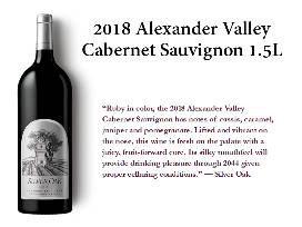 Plus, take home their 2018 Alexander Valley Cabernet Sauvignon, Magnum size bottle (1.5L) valued $205.