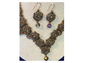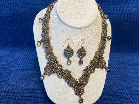 0Jayashree Paramesh Design beaded green and copper necklace and earrings. Handmade by Ellen Kroll. Valued at $200.