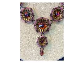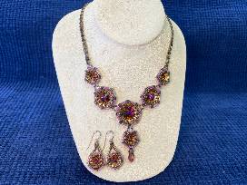Cindy Holsclaw Design mauve and gold beaded necklace and earrings. Handmade by Ellen Kroll. Valued at $200.