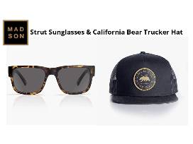 Strut Sunglasses and California Bear Trucker Hat by Madson of America. Total value is $121.