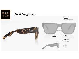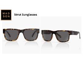 - Strut Sunglasses with Tortoise Frames and Grey Polarized Lens. Frame fit is wide. Lightweight comfort and durable. Retail value is $95.