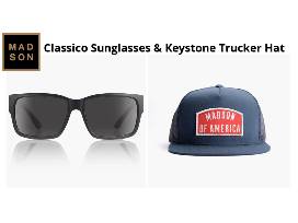 Classico Sunglasses and Keystone Trucker Hat by Madson of America. Total value is $99.