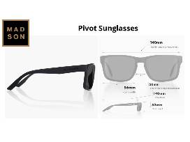 - Pivot Sunglasses with Black on Black Frames and Grey Polarized Lens. Frame fit is medium to wide. Lightweight, durable construction with rubber nose pads and rubber temple tips for optimal grip. Retail value is $95.