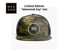 - Limited Edition "Memorial Day" Hat in Camo. Mesh back Adjustable. Retail value is $28.