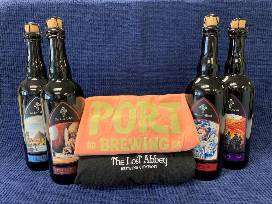 - The Lost Abbey beer and merch gift set, which includes four pint sized bottled beers, a women's medium tank top and men's large, long-sleeve hoodie t-shirt. Lost Abbey Beer flavors include Bible Stories (Oak-Aged Barleywine Ale), Carnevale (Brett Saison), Judgement Day (Abbey Quad with Raisins) and Lost and Found (Abbey Dubbel with Raisins). Total package valued at $100. Donated by The Lost Abbey.