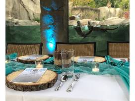 Spend the evening dining with the otters as they dig, dip, and dive the evening away. Eight (8) guests will enjoy a gourmet dinner while our otter friends frolic in their habitat for the guests to see. Warrick, Kramer, and Meeko promise to be on their best behavior as you get a peek into how our zookeepers care for these otterly adorable animals.