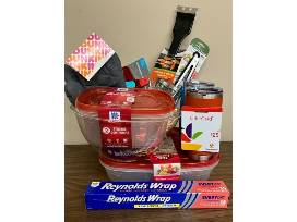 - Chip bowl, food storage containers, grill tools, oven mitts, salt and pepper shakers, chip clips and aluminum foil