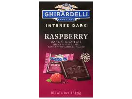 - Ghirardelli dark chocolate Raspberry and Sea Salt Caramel squares