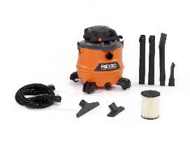 This newly designed RIDGID 16 gallon wet/dry vac is a multifunctional powerhouse. Its powerful motor and large drum size allow it to perform extremely well as a conventional vac. In addition, the vacuum's power head detaches and quickly converts into a 180 peak MPH handheld blower with a locking blowing wand that outperforms most dedicated leaf blowers. The quick-release cord wrap lets you spend less time unwrapping the 20' cord, and more time on the job. The caddy conveniently keeps your accessories and hose close at hand. It's like two incredible tools in one.