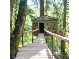 TreeHouse Point is home to seven iconic, rentable treehouses and two cedar-lined bathhouses. Nestled in a lush forest 30 minutes east of Seattle, TreeHouse Point is the perfect place to immerse yourself in the natural beauty of the Pacific Northwest. This certificate entitles the holder to one single-night stay in a treehouse of your choice, valid for 2 adults, breakfast included. All indoor spaces are heated, and we provide bedding, towels, and even shampoo and conditioner, so come prepared as you would for a typical hotel stay.