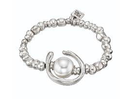 Una Vuelta Mas Bracelet - A uniquely designed elastic bracelet featuring round beads, paired with a silver-plated ring and a luscious white pearl.