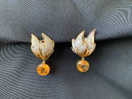 - Gemstones: Each earring features two bezel-set dangle round gemstones - one clear round cubic zirconia and one round citrine. Swap out the gemstones to change suit your look.