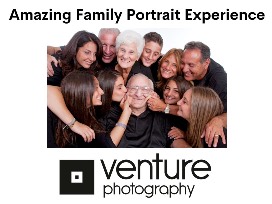 Capture your family forever in this 75 minute family photo shoot in Venture Photography's Greenwich, CT studio ($750 value). Includes a Follow-up Design Consultation to view images and create artwork, as well as your favorite image in a custom 11"x13" frame (or a $400 credit towards a larger frame). No additional charge for pets or extended family up to 10 individuals. Not to be combined with other offers. By appointment only.