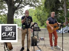 - Acoustic duo "Big Slate" will provide a two-hour set of rock, folk, and Irish favorites from Bruce Springsteen, Neil Young, The Pogues, The Beatles, and more. Check them out here: https://www.youtube.com/watch?v=JX3vycPVYIQ.