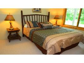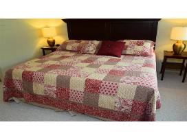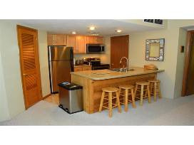 - Privately owned condo has two bedrooms, two baths, well-equipped kitchen, large living room with fireplace, and spacious deck with picnic table.