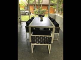 - Accommodates 8 people comfortably and includes patio with firepit