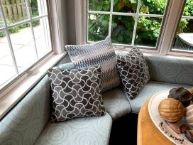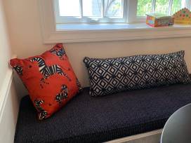 - Curtains Up Custom Furnishings owner, Andrea Mediate, will help you select from a wide variety of fabric styles and colors so she can create your two custom decorative throw pillows.