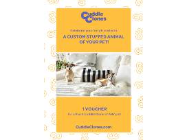 Turn your pet into a custom stuffed animal! The winner of this item will receive a voucher for a Cuddle Clone that looks just like your pet. This certificate covers the cost of one plush Cuddle Clone and shipping anywhere in the U.S. Coupon valid until three months after Beastie Ball (1/29/2023).