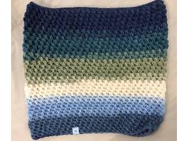 Perfect warmth and softness for your neck in the cold winter months ahead! Hand crocheted, using Lion Brand yarn, this perfect combination of versatile colors, featuring shades of blues, greens and an accent of cream, is sure to become your favorite go-to muffler!