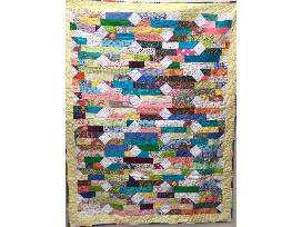 Considered a picnic quilt, the pattern is called a "scrappy" quilt pattern. A beautiful array of colors is used and even the back side is beautiful!