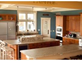 The house was built in 2008. It has nine bedrooms including an eight-bed children's bunkroom and sleeps a total number of 25 people (in beds). Each bedroom has its own private bathroom. The main level has a modern kitchen with adjoining eating area, a great room with large dining table, and a study. The walkout lower level contains a children's playroom; combination family room/game room; and a soda bar and den area.
