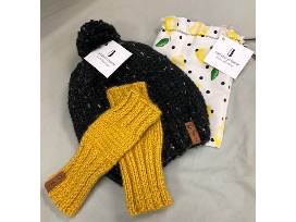 Number 3 set has a black flecked hat that is perfectly complimented by mustard colored fingerless gloves.