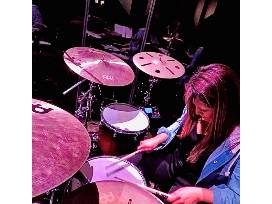 She drums for Wheaton Bible Church some Sundays as well as being the Service Producer for Spanish services and Worship Leader (which is her main role).