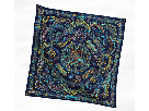 Parures des Maharajas (design by Catherine Baschet) This scarf is a tantalizing glimpse of the fascinating world of the maharajahs and the splendors of their jewelry. The precious stones are encircled with fine threads of gold, the gem is backed with enamel and at the centre of the composition features an imposing necklace known as an Arya. Its exotic beauty lies in its floral and geometric motifs, and its dazzling technique.