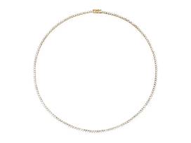 - Jennifer Meyer 18K Yellow Gold 3-Prong Diamond Tennis Necklace Crafted in 18-karat yellow gold, our Diamond3 ProngTennis Necklace is set with 6.2 carats of round, brilliant cut white diamonds -a stunning piece with timeless appeal!