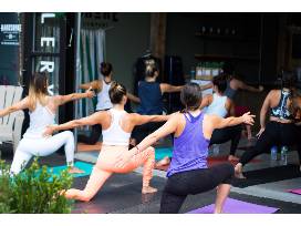 1Yoga session for eight (8) at a location of your choice in Orange County. Includes wine. prosecco, glasses and a blanket.