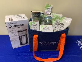 - Capresso Coffee Maker - Heats quickly, holds a 16 oz. stainless steel travel mug or your own mug. Can be used with ground coffee or pods. (donated by Dave Jones)