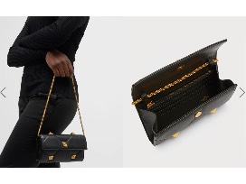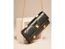 Valentino Roman Stud Lambskin Wallet on Chain in Black