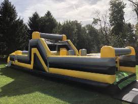 It Features 7 obstacles, jump through openings, pop ups, log jams, squeeze walls, crawl tubes, ROCK WALL and slide! It is the perfect choice for any backyard event, company picnic, church function or corporate event. Your full day rental includes delivery and setup. The day ends at sundown.
