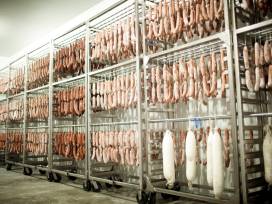 Ingredients are our inspiration and we seek out the best and freshest. We butcher antibiotic-free, high-quality pork to 100% lean, adding pure, soft fatback, and a judicious amount of sea salt, fresh garlic and freshly ground spices. Our cured meats are held in natural casings and maintained in the organic white mold that protects them."