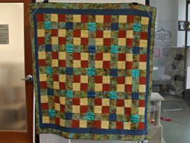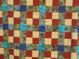 You're bidding on a handmade, 9-patch cotton and poly satin quilt with a cotton flannel back!