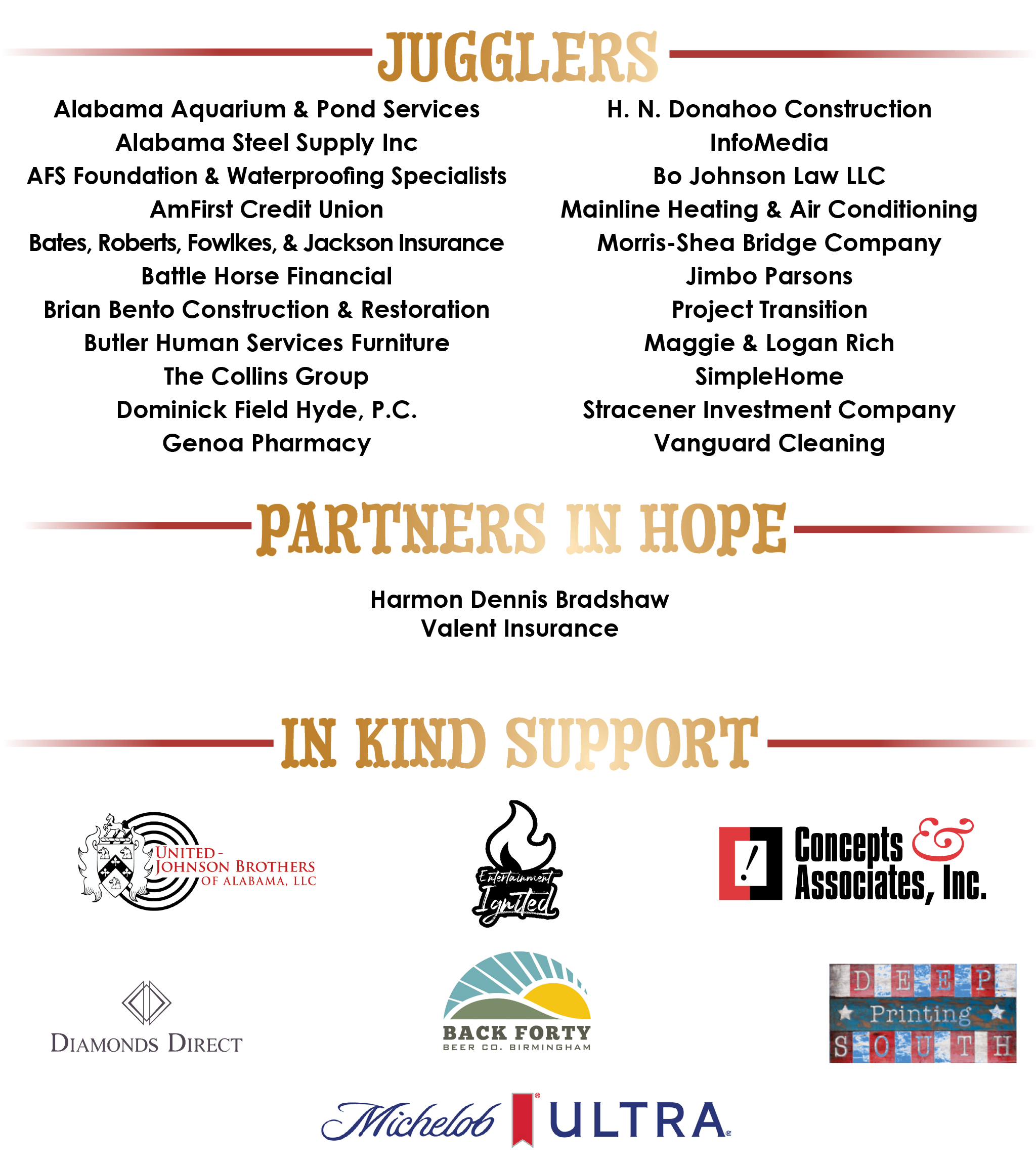 Special thanks to the generous Big Top sponsors who support children with autism and other behavioral health needs.