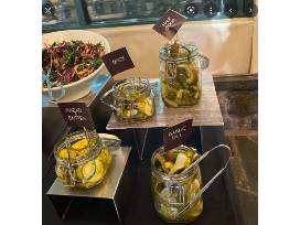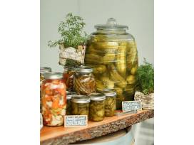 At your pickle party, Evergreen and Market will serve 25-49 people a buffet of pickles. The package includes 4 flavors of pickles: