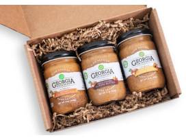 Almond Butter Trio Gift Box from Georgia Grinders including Honey Roasted, Maple Caramel and Original Almond Butter