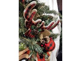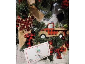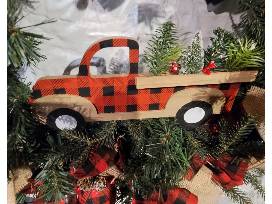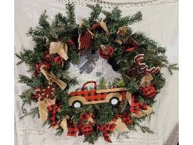 This was inspired by classic Christmas memories. The incorporation of red and black plaid with a Colorado vibe. The farm trucking hauling trees showcased in the middle surrounded by the things we hold dear, snow, trees and animals. The coffee and chocolate that accompany this wreath will have you feeling warm and cozy as you enjoy them by the fire.