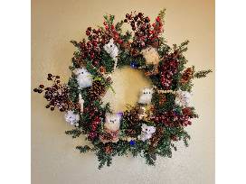 Included--Battery-operated, lighted 30" wreath with decorations and gift card: