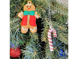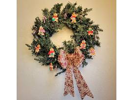 Included--Battery-operated, lighted 30" wreath with decorations and gift card: