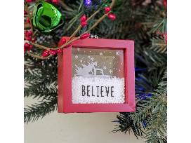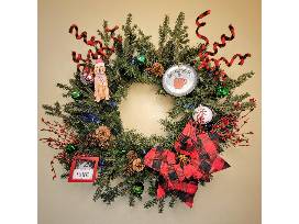 Included--Battery-operated, lighted 30" wreath with decorations and gift card: