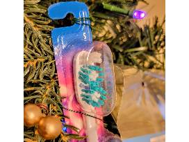 Included--Battery-operated, lighted 30" wreath with decorations and gift card: