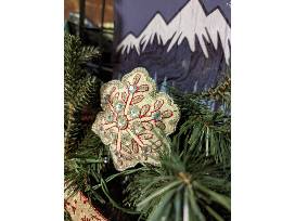 Included--Battery-operated, lighted 30" wreath with decorations and Snowboard: