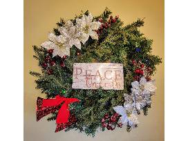 Included--Battery-operated, lighted 30" wreath with decorations and gift certificates to: